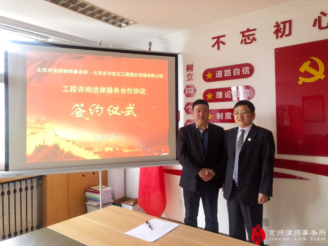 2020年5月11日,北京東方宏正工程造價(jià)咨詢有限公司與京師律師事務(wù)所簽訂工程咨詢法律服務(wù)合作協(xié)議,雙方在施工總承包、工程總承包、PPP、BOT等各類建設(shè)項(xiàng)目的招標(biāo)代理、造價(jià)咨詢、全過程項(xiàng)目管理等咨詢服務(wù)領(lǐng)域達(dá)成全面合作。